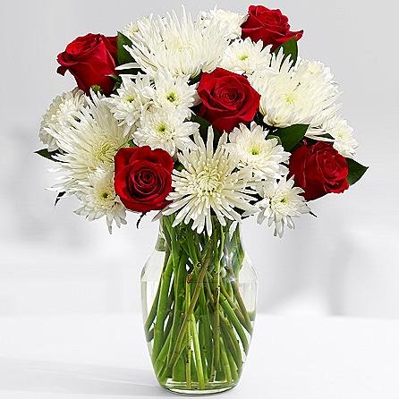 Express your heartfelt emotions with our Classic Red & White Harmony Bouquet, a sophisticated blend of radiant red roses, pure white mums, and lush greenery. Perfect for romantic gestures, anniversaries, or thoughtful surprises, this bouquet carries a timeless charm that never goes unnoticed.